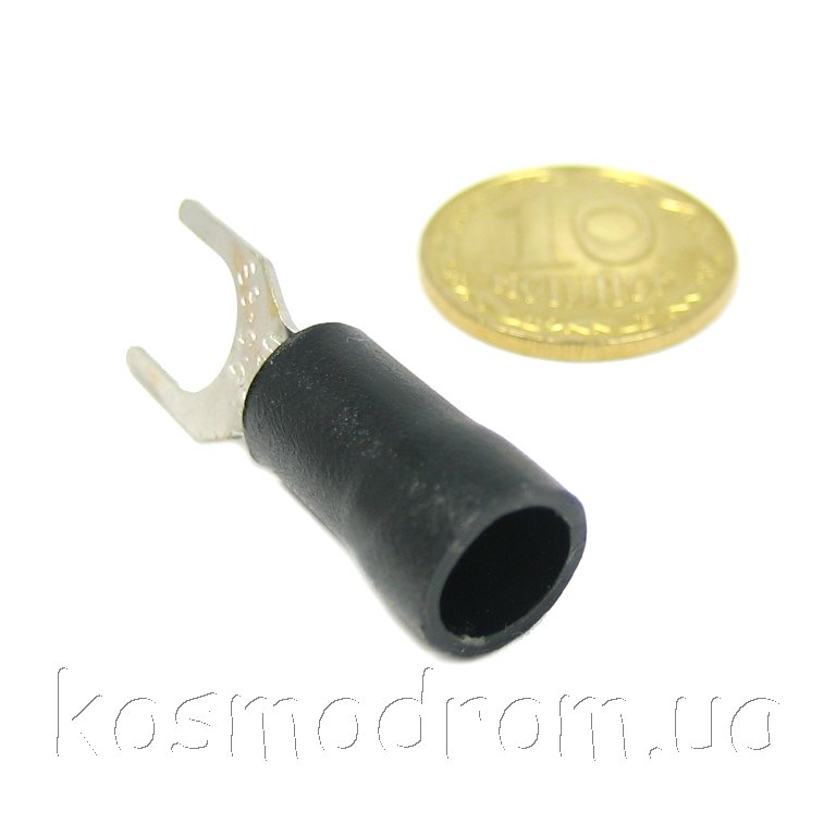 Наконечник кабельный вилочный (клемма) с изоляцией. Диам. отверстия под болт 6,5 мм, провод 4-6 мм. Цвет изолятора: черный