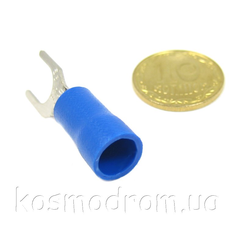 Наконечник кабельный вилочный (клемма) с изоляцией. Диам. отверстия под болт 6,5 мм, провод 4-6 мм. Цвет изолятора: синий