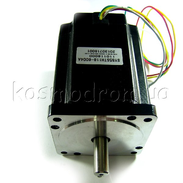 Фото может отличаться от реального вида предмета, но это не влияет на основные характеристики изделия | Шаговый двигатель SY85STH118-6004A Угол шага - 1.8 гр. Ток обмотки -6 А. Сопротивление обмотки -0.6 Ом. Момент удержания - 87 кг/см. Вес - 3.9 Кг. Габариты - 85.85 х 85.85 х 118 мм. Диаметр вала - 12.7 мм