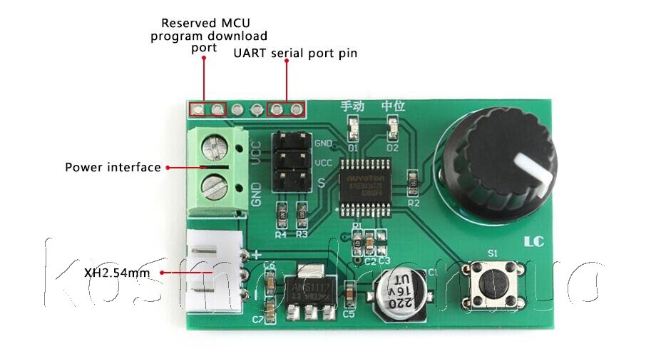 с помощью кнопки на плате. Функция возврата в исходное положение.