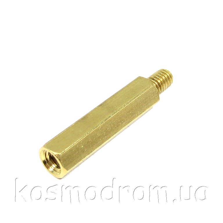 Дистанцирующая стойка под ключ 6 мм с резьбой: латунь: 25 мм