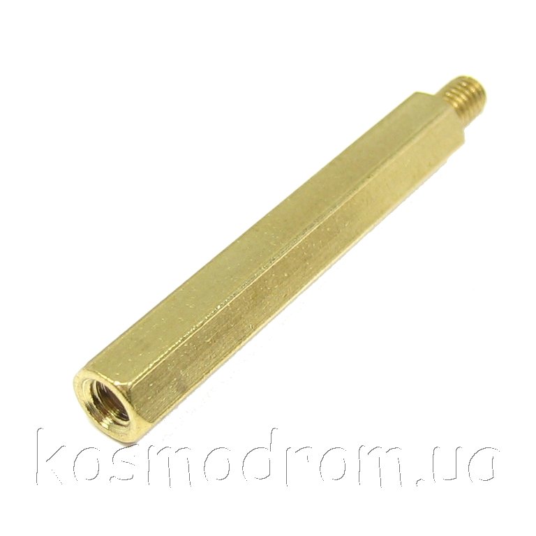 Дистанцирующая стойка под ключ 6 мм с резьбой: латунь: Общая длина 46 мм