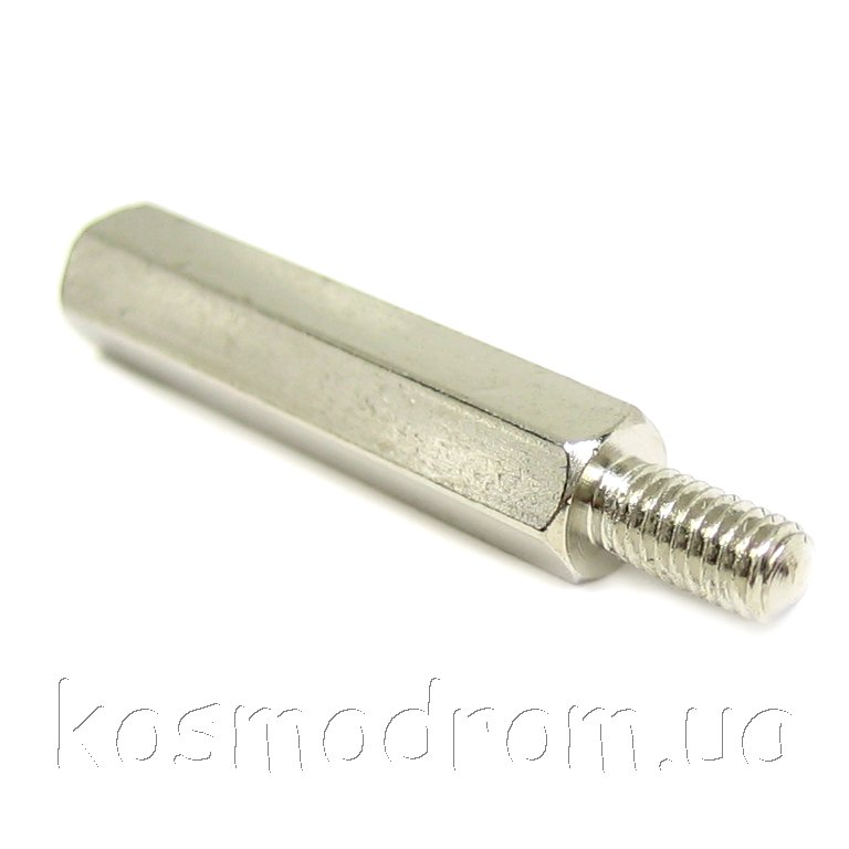 Дистанцирующая стойка, никелированная латунь, мама-папа, M3*21+6, размер ключа: 5 мм