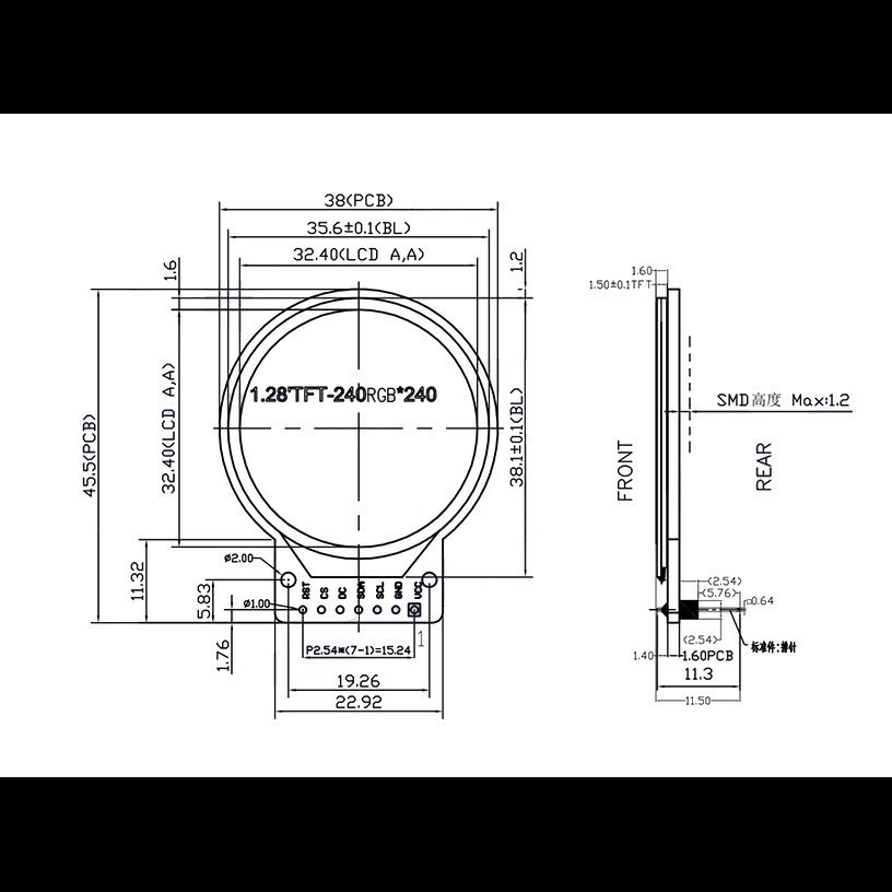 TFT1.28 Display — это микрокруглая ЖК-панель IPS TFT с разрешением 240x240 пикселей