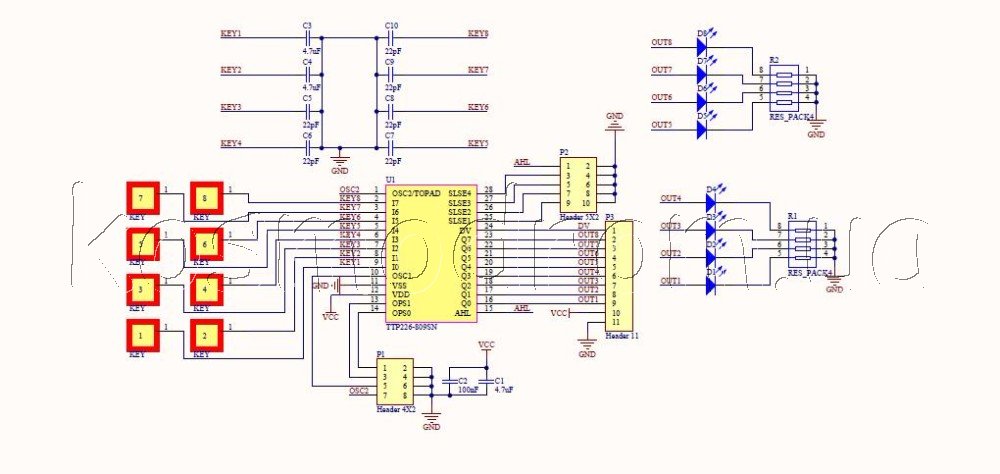 Сенсорная (ёмкостная) клавиатура восьмиканальная. 2х4 на основе TTP226
