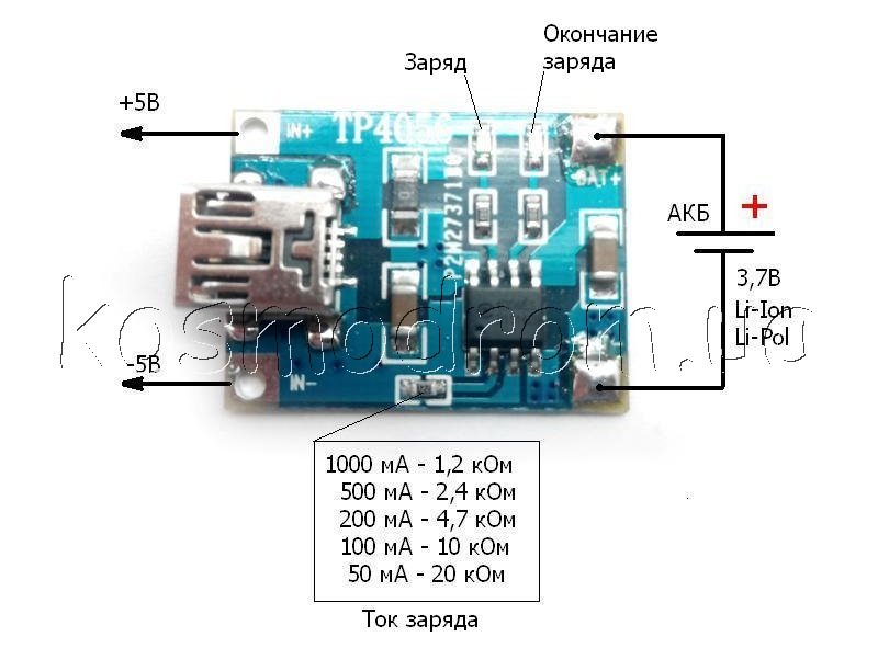 Модуль подходит для зарядки Литий-Ионных и Литий-полимерных (Li-Ion, Li-Po) аккумуляторов на 3,7В. Будь то аккумуляторы от мобильного телефона или батареи типоразмер 18650 которые применяются в батареях для ноутбуков.