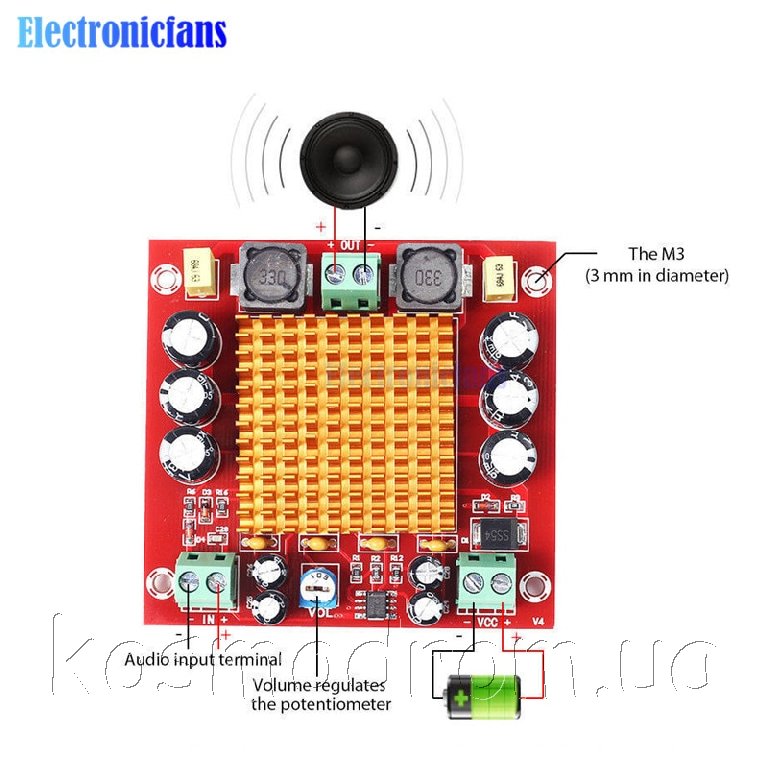 Модуль построен на базе звуковой микросхемы D-класса. В модуле