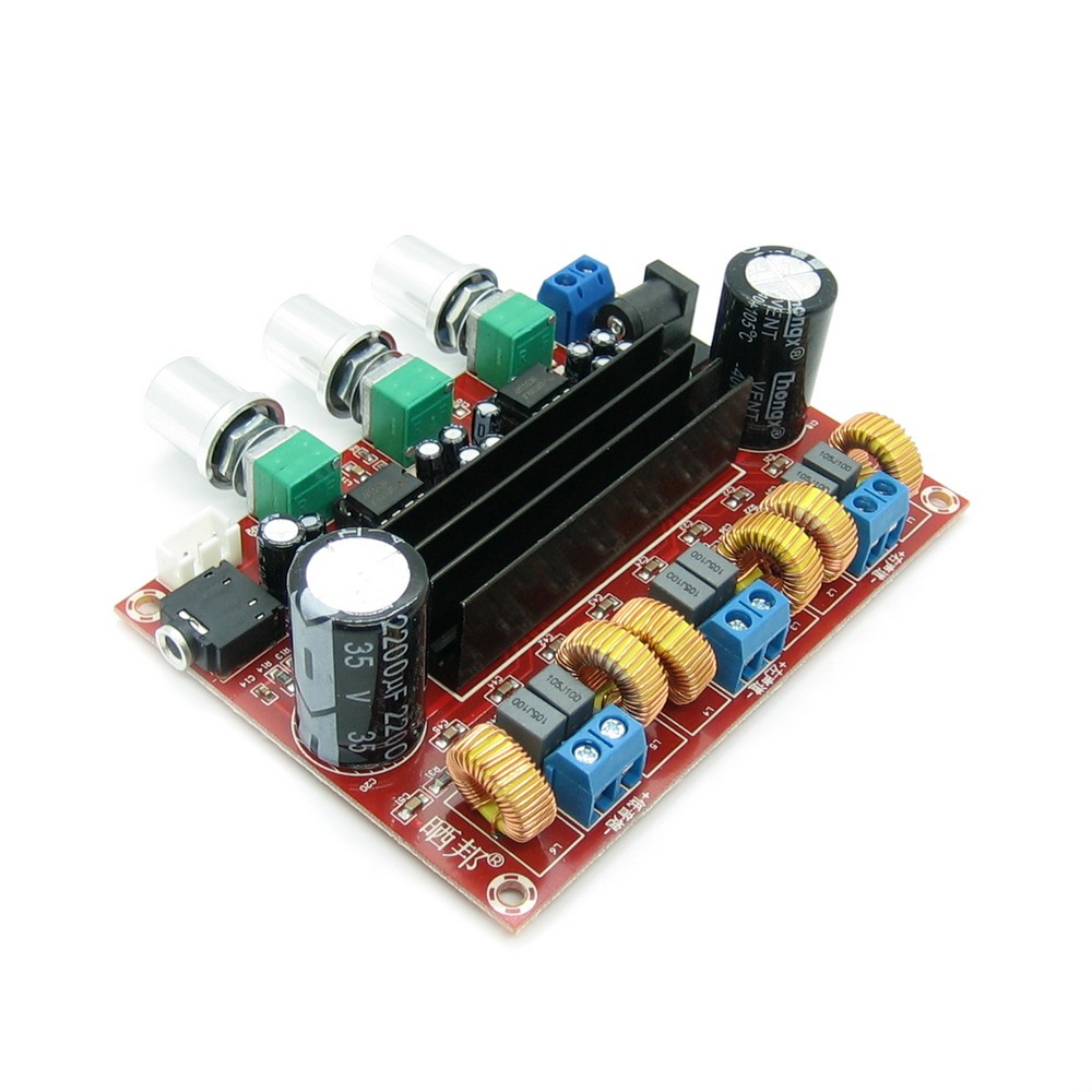 Стерео усилитель класса D мощностью 50+50+100 Вт с однополярным питанием 12 В - 24 В и встроенным регулятором громкости на двух TPA3116D2.