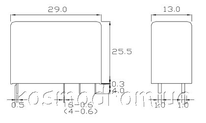 Реле электромеханическое: Силовое, 1A, (одна замыкающая группа контактов) 5 VDC, 16A/24VDC, 16A/250VAC, Размер:29x13x25.5мм