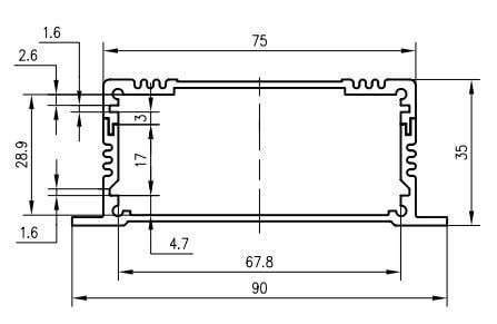 Фото может отличаться от реального вида предмета, но это не влияет на основные характеристики изделия | Корпус UNI-S-TOP Профиль UNI-S-основание (алюминиевый, анодированное покрытие, длина 2000 мм) (2000мм х 75мм х 13мм)