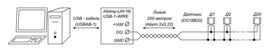 (ПК) с периферийными устройствами через однопроводную шину (1-wire).
