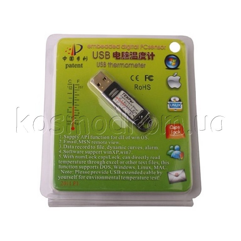 Фото может отличаться от реального вида предмета, но это не влияет на основные характеристики изделия | Измеритель температуры USB-THERMOMETER USB термометр. Диапазон измерения: -55...125 С. USB Thermometer Sensor Temperature Data Logger