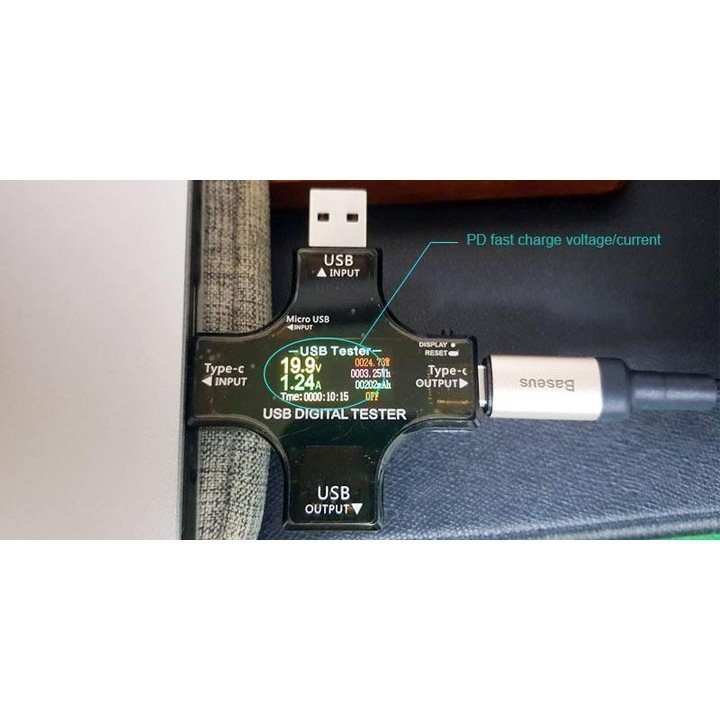 • Тестер измеряет напряжение, ток, емкость, мощность, сопротивление нагрузки, D