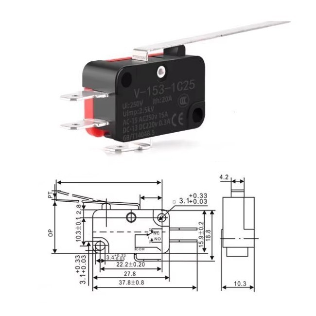 Микропереключатель V-153-1C25 — это компактный и надёжный компонент, широко используемый в промышленной автоматике, бытовой технике и других электронных устройствах.