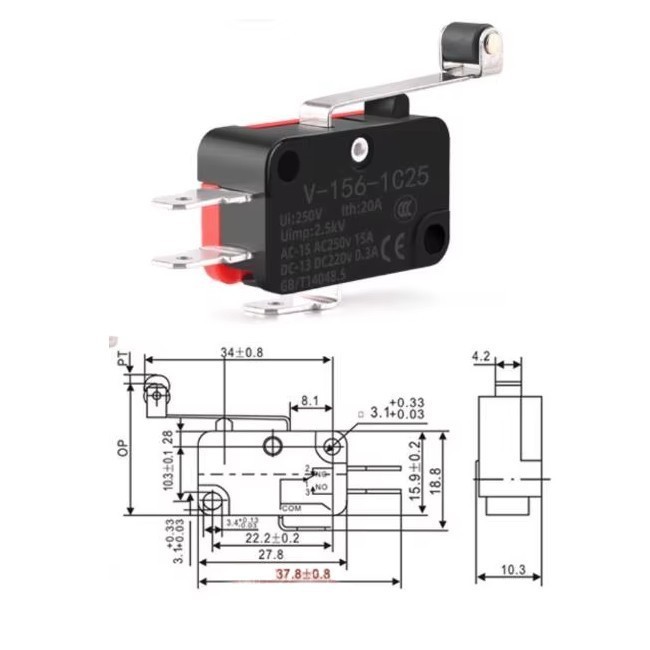 Микропереключатель V-156-1C25 — это компактный и надёжный компонент, широко используемый в промышленной автоматике, бытовой технике и других электронных устройствах.