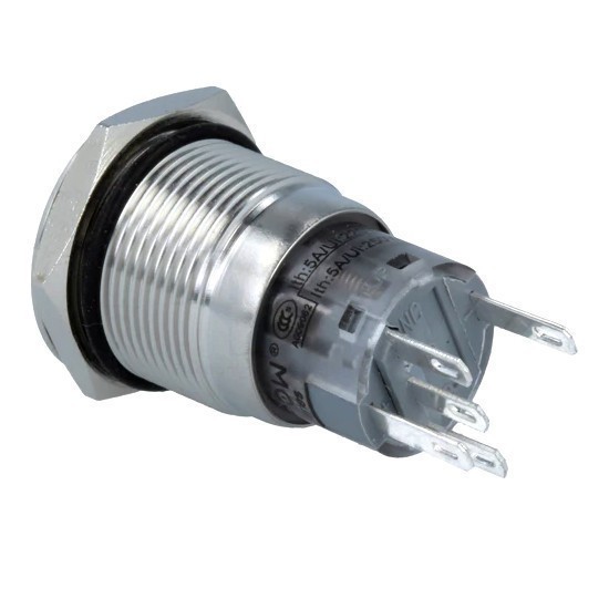Фото может отличаться от реального вида предмета, но это не влияет на основные характеристики изделия | Кнопка антивандальная V19-11R-24B-S Переключатель: антивандальный, Пол: 2, SPDT, 0,5A/220ВAC, 1A/24VDC