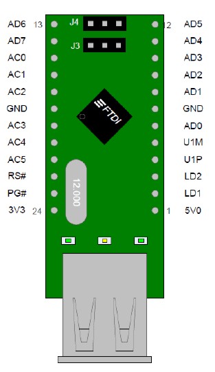 - Reset# и Prog# сигналывыведены на контакты модуля, что дает возможность