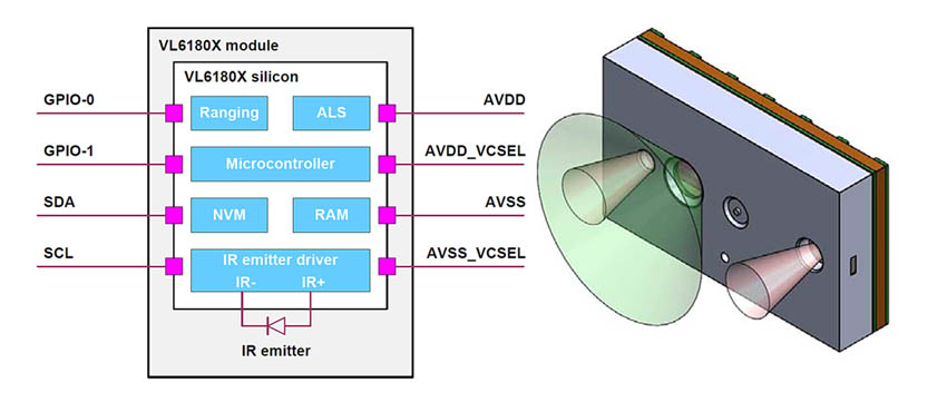 и датчик окружающего освещения, VL6180X легко интегрируется в существующие