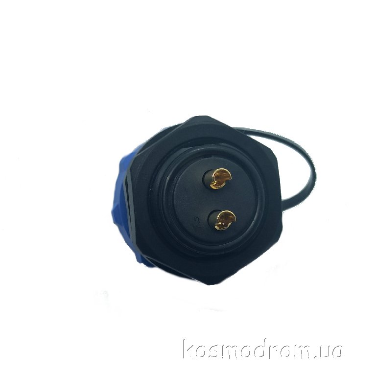Фото может отличаться от реального вида предмета, но это не влияет на основные характеристики изделия | Круглые герметичные разъемы IP68 W21A2-02 SP21, гнездо, PIN: 2, IP68, пайка на панель, 500В, с защитной крышкой