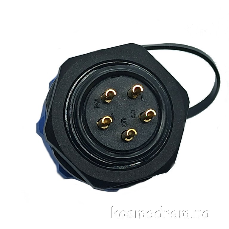 Фото может отличаться от реального вида предмета, но это не влияет на основные характеристики изделия | Круглые герметичные разъемы IP68 W21A2-05C SP21, гнездо, PIN: 5, IP68, пайка на панель, 500В, с защитной крышкой