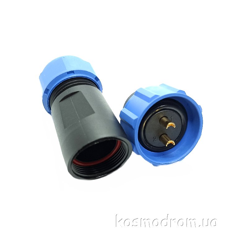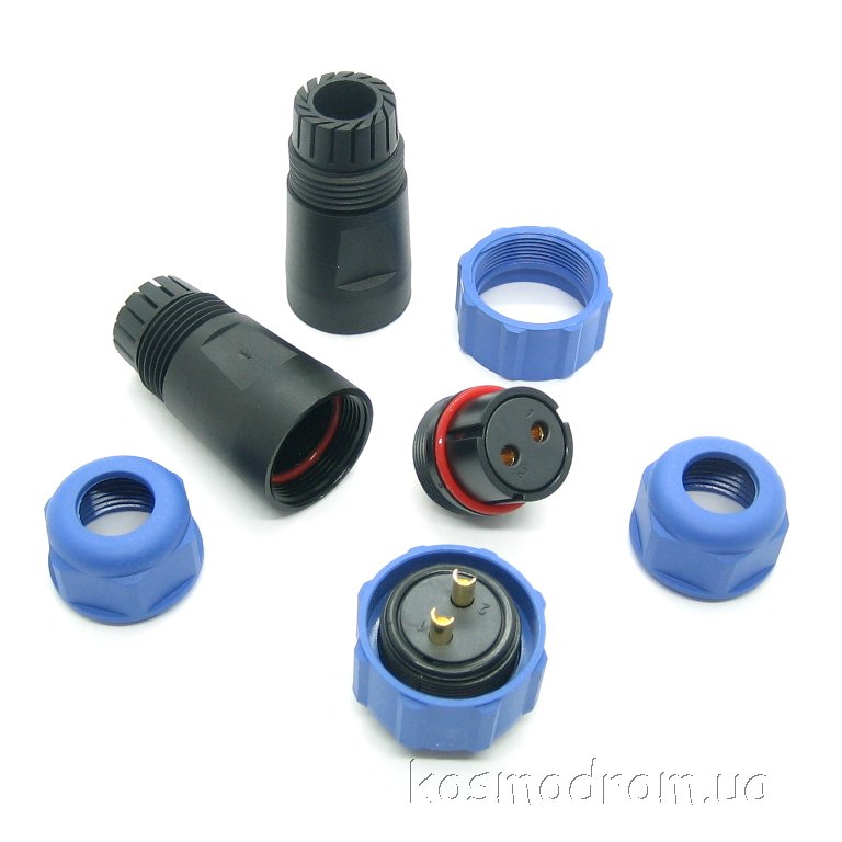 Фото может отличаться от реального вида предмета, но это не влияет на основные характеристики изделия | Круглые герметичные разъемы IP68 W21B1-02 SP21, гнездо, PIN: 2, IP68, диаметр кабеля: 7...12мм, пайка, на провод, 500В