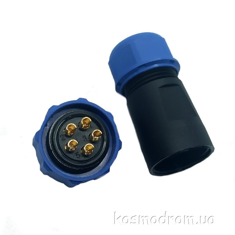Фото может отличаться от реального вида предмета, но это не влияет на основные характеристики изделия | Круглые герметичные разъемы IP68 W21B1-05A SP21, гнездо, PIN: 5, IP68, диаметр кабеля: 7...12мм, пайка, на провод, 500В