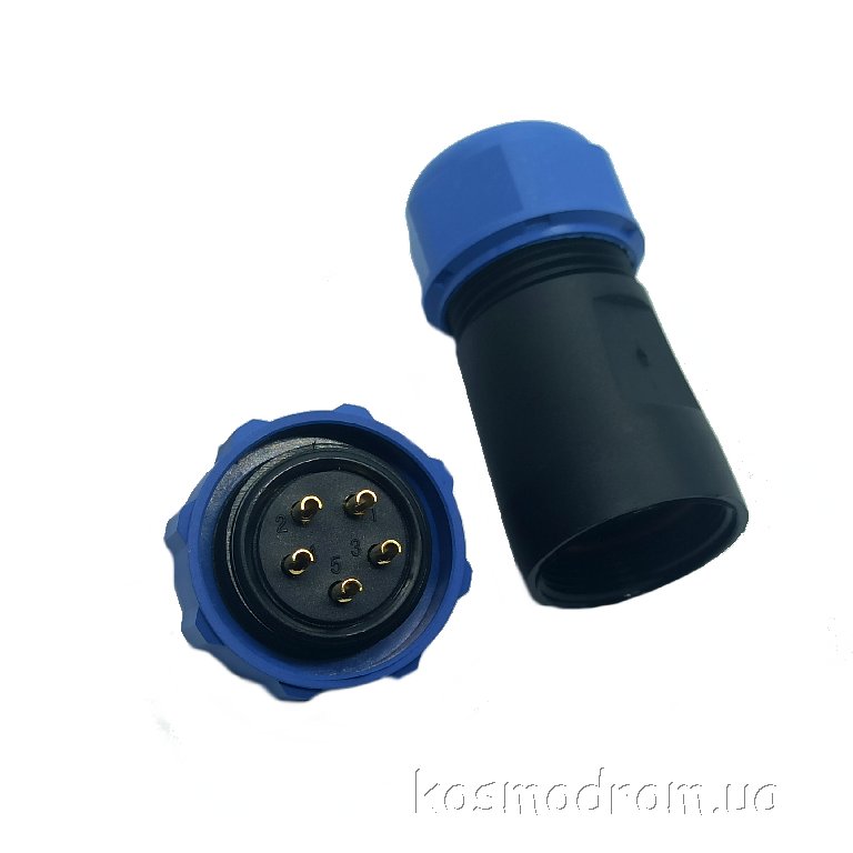 Фото может отличаться от реального вида предмета, но это не влияет на основные характеристики изделия | Круглые герметичные разъемы IP68 W21B1-05C SP21, гнездо, PIN: 5, IP68, диаметр кабеля: 7...12мм, пайка, на провод, 500В