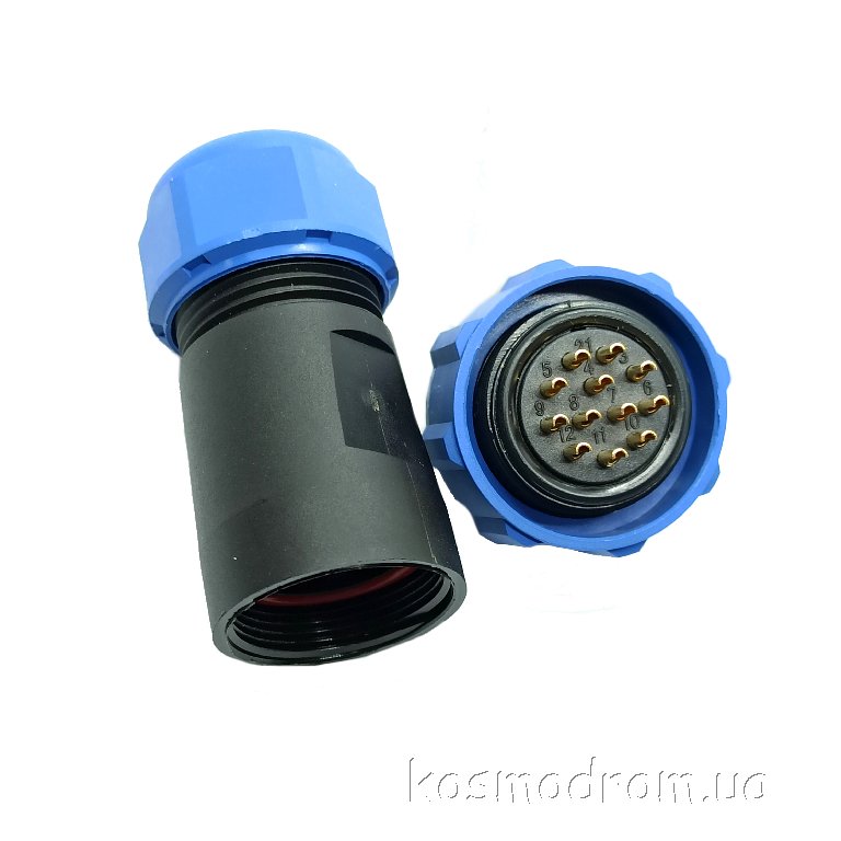 Фото может отличаться от реального вида предмета, но это не влияет на основные характеристики изделия | Круглые герметичные разъемы IP68 W21B1-12 SP21, гнездо, PIN: 12, IP68, диаметр кабеля: 7...12мм, пайка, на провод, 400В Временно нет на складе...