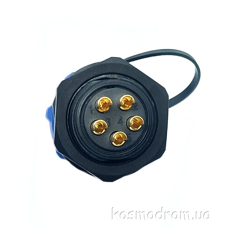 Фото может отличаться от реального вида предмета, но это не влияет на основные характеристики изделия | Круглые герметичные разъемы IP68 W21B2-05A SP21, вилка, PIN: 5, IP68, пайка на панель, 500В, с защитной крышкой