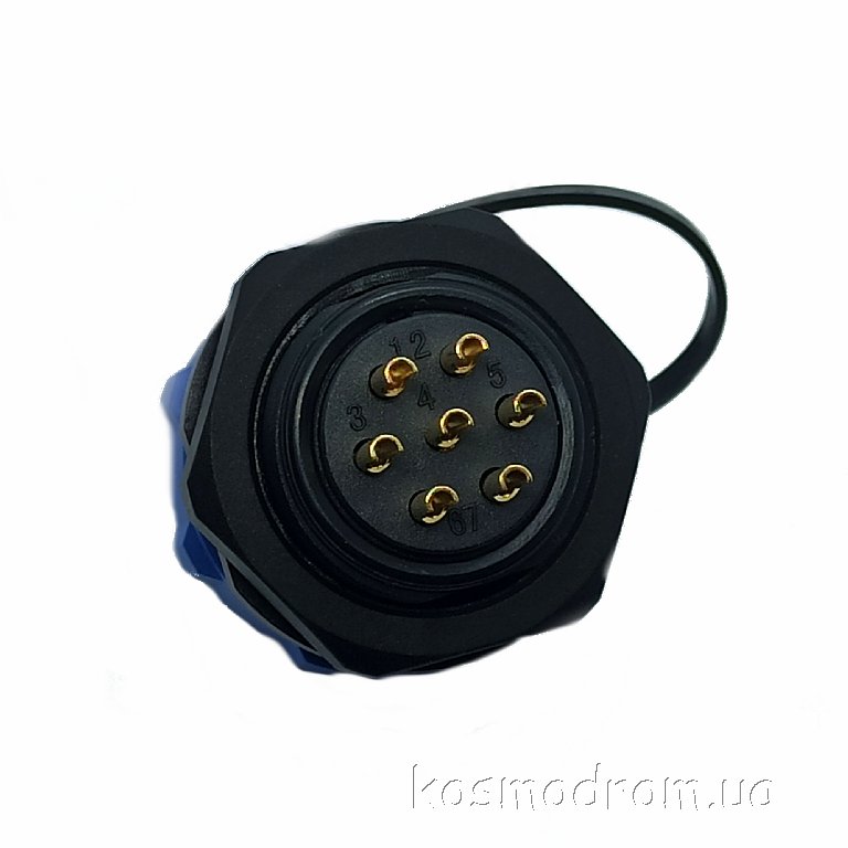Фото может отличаться от реального вида предмета, но это не влияет на основные характеристики изделия | Круглые герметичные разъемы IP68 W21B2-07 SP21, вилка, PIN: 7, IP68, пайка на панель, 500В, с защитной крышкой