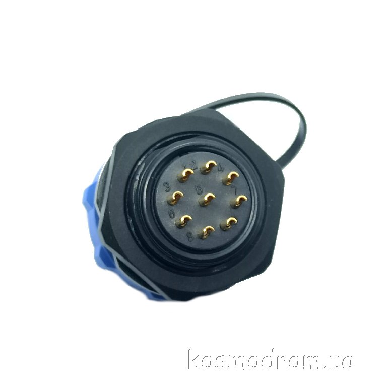 Фото может отличаться от реального вида предмета, но это не влияет на основные характеристики изделия | Круглые герметичные разъемы IP68 W21B2-09 SP21, вилка, PIN: 9, IP68, пайка на панель, 500В, с защитной крышкой