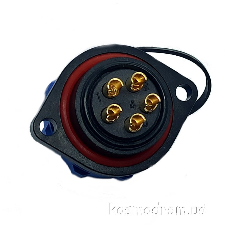 Фото может отличаться от реального вида предмета, но это не влияет на основные характеристики изделия | Круглые герметичные разъемы IP68 W21B3-05A SP21, вилка, PIN: 5, IP68, пайка на панель, 500В, с фланцами