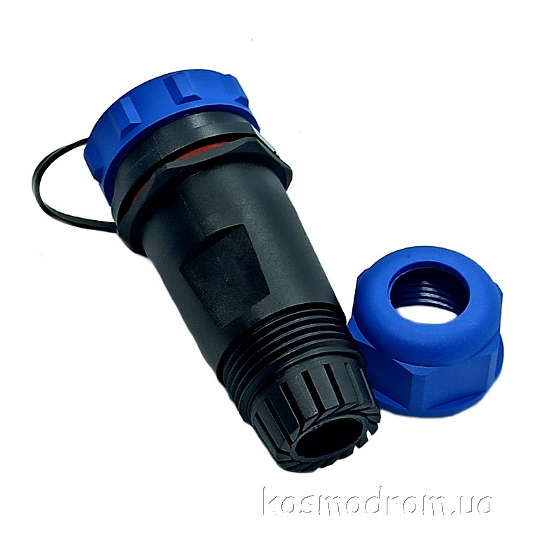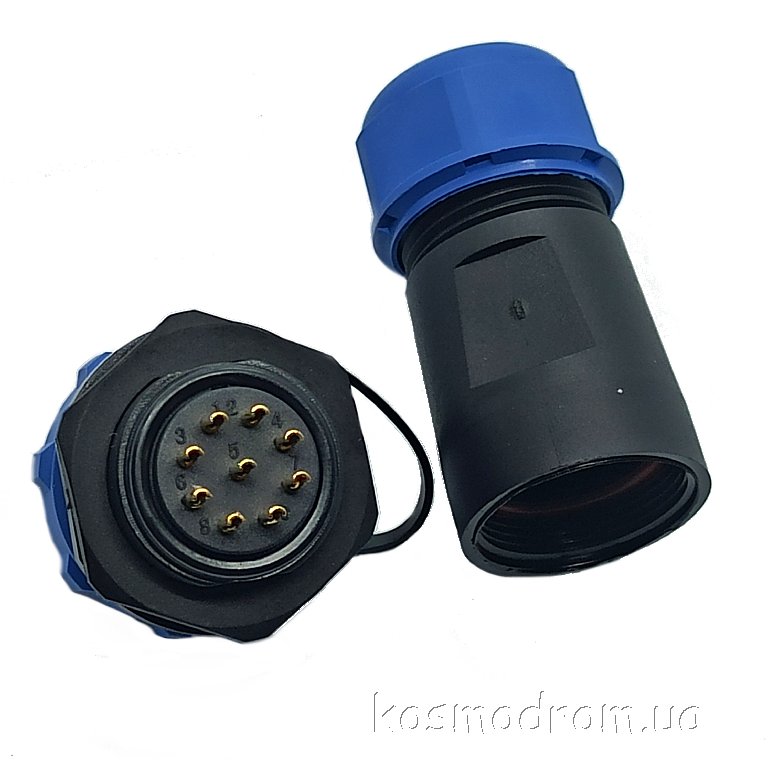 Фото может отличаться от реального вида предмета, но это не влияет на основные характеристики изделия | Круглые герметичные разъемы IP68 W21B4-09 SP21, вилка, PIN: 9, IP68, диаметр кабеля: 7...12мм, пайка, на провод, 500В с защитной крышкой