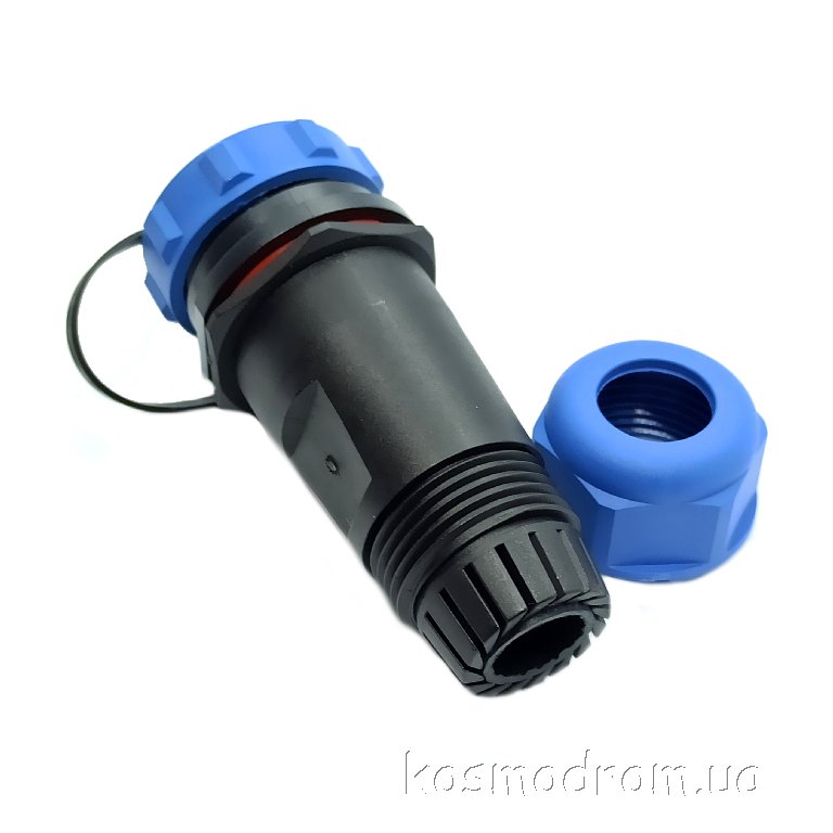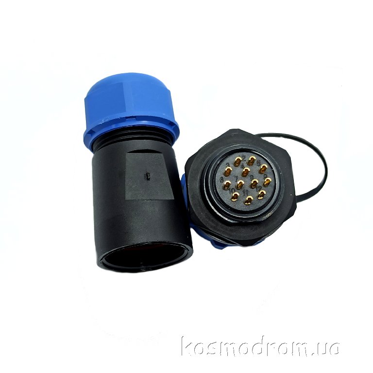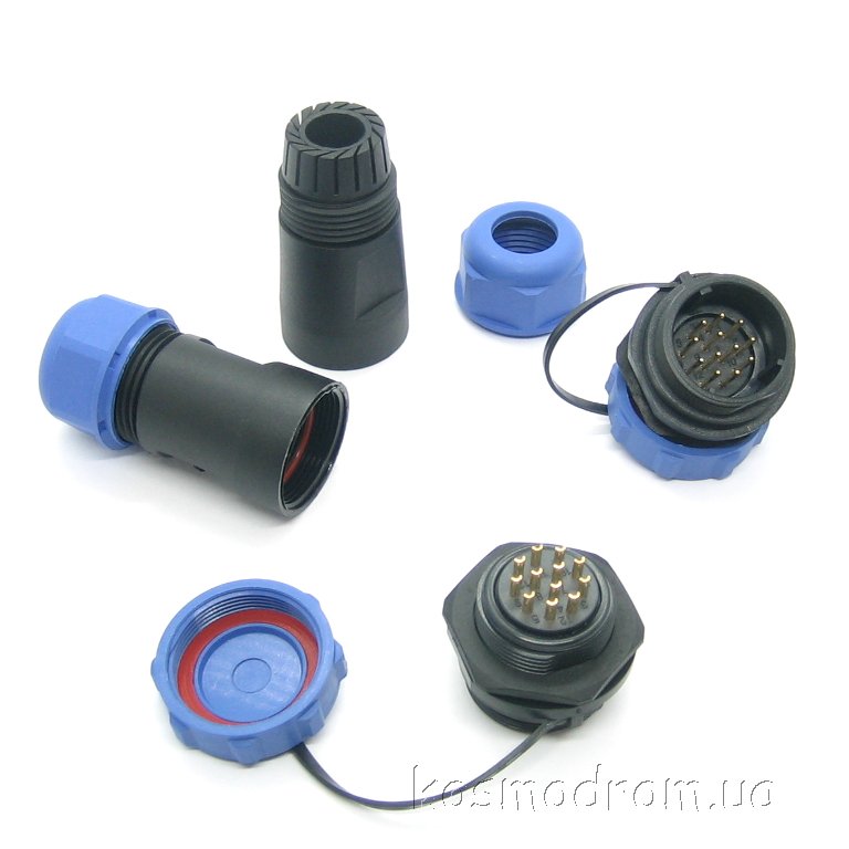 Фото может отличаться от реального вида предмета, но это не влияет на основные характеристики изделия | Круглые герметичные разъемы IP68 W21B4-12 SP21, вилка, PIN: 12, IP68, диаметр кабеля: 7...12мм, пайка, на провод, 400В с защитной крышкой
