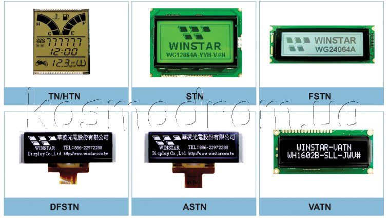 следующие технологии: TN, STN, FSTN, color STN, COG, TFT, FCS-LCD,