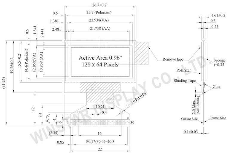 Ультратонкий 0.96" OLED дисплей WEO012864D с полиуретановой губкой |