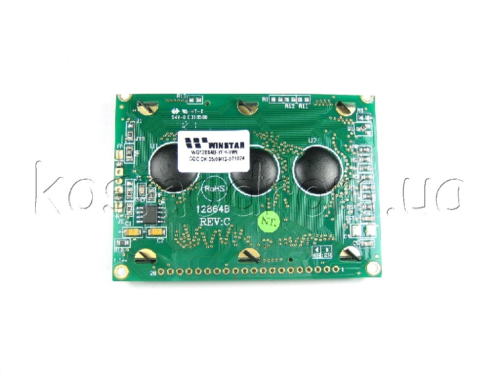 Фото может отличаться от реального вида предмета, но это не влияет на основные характеристики изделия | Жидко-кристаллическая матрица WG12864B-YFK-VN ЖКИ модуль: 128x64, 75.0x52.7, FSTN (белый, позитив), LED желто-зеленый