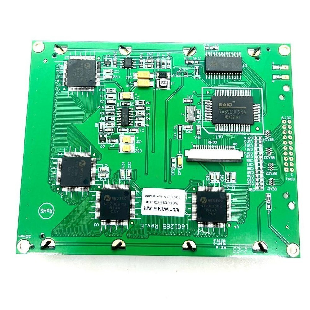 Фото может отличаться от реального вида предмета, но это не влияет на основные характеристики изделия | Жидко-кристаллическая матрица WG160128B-YGH-TZ ЖКИ модуль: 160x128 точек, 129.0x102.0 мм.Технология: STN (серый, позитив), Тип подсветки: LED желто-зеленый