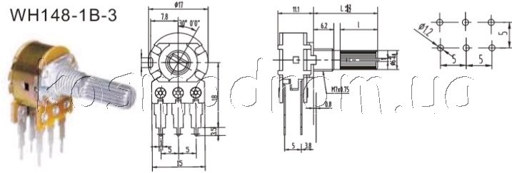 Тип потенциометра - shaft, однооборотный