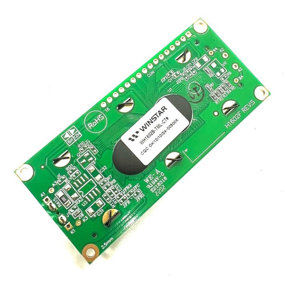 Фото может отличаться от реального вида предмета, но это не влияет на основные характеристики изделия | Жидко-кристаллическая матрица WH1602B-TML-CT# ЖКИ симв, 16 x 2, STN Синий Negative/Transmis, подсветка LED белая, размеры 80x36 мм, видим. обл. 66x16 мм, VDD = 5V, 12 o`cl, -30...80 С, English/Cyrillic Font