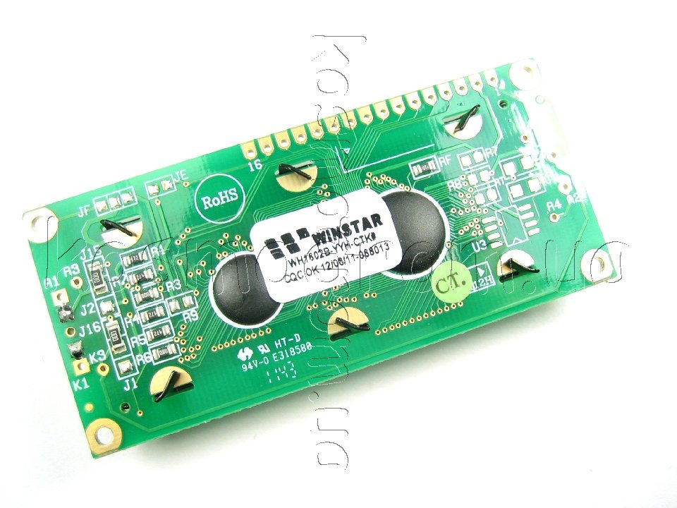 Фото может отличаться от реального вида предмета, но это не влияет на основные характеристики изделия | Жидко-кристаллическая матрица WH1602B-YYH-CTK символьный - 16 символов x 2 строк. размеры:80.0 x 36.0мм, 66.0 x 16.0, Интерфейс: 6800 interface (ST7066 IC), Размер символов: 2,96х5,56 мм, English/Cyrillic Font