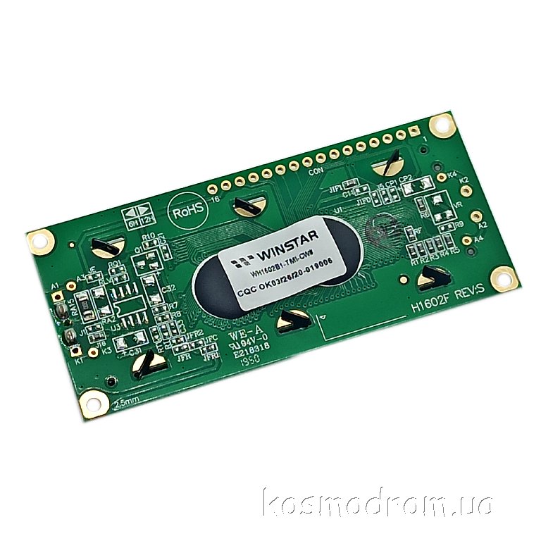 Фото может отличаться от реального вида предмета, но это не влияет на основные характеристики изделия | Жидко-кристаллическая матрица WH1602B1-TMI-CW-SPI ЖКИ модуль: 16 символов 2 строки, Размеры: 80x36 мм.,Интерфейс: SPI, English/Cyrillic Font