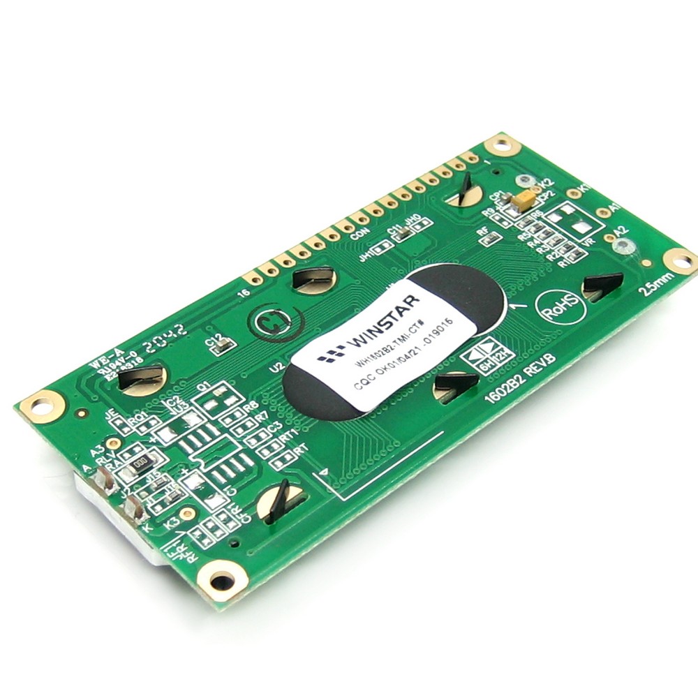 Фото может отличаться от реального вида предмета, но это не влияет на основные характеристики изделия | Жидко-кристаллическая матрица WH1602B2-TMI-CT ЖКИ модуль: 16 символов 2 строки, размеры: 80.0x36.0 мм. нтерфейс: SPI, Размер символов 2,95х5,55 мм, English/Cyrillic Font