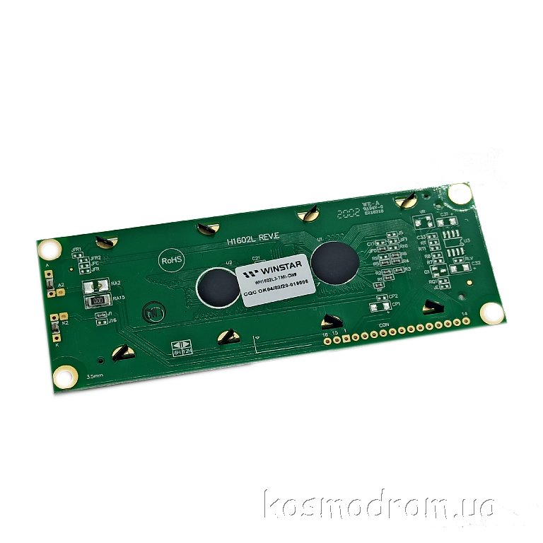 Фото может отличаться от реального вида предмета, но это не влияет на основные характеристики изделия | Жидко-кристаллическая матрица WH1602L3-TMI-CW-I2C символьный - 16 символов x 2 строк. размеры модуля, мм: 122.0 x 44.0. размер видимой области, мм: 99.0 x 24.0. Размер символа: 4,84х9,66 мм, Интерфейс I2C, English/Cyrillic Font