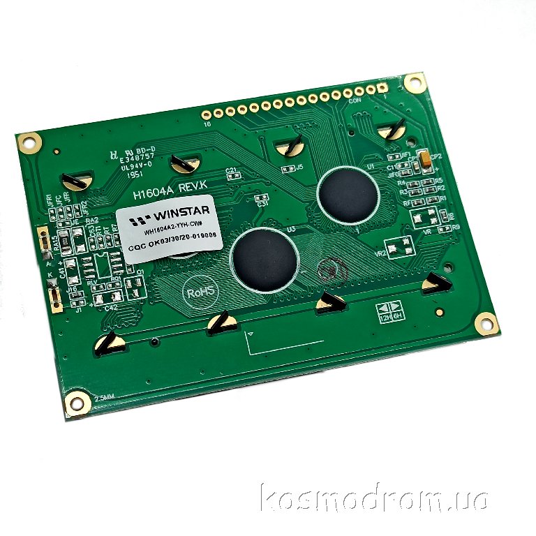 Фото может отличаться от реального вида предмета, но это не влияет на основные характеристики изделия | Жидко-кристаллическая матрица WH1604A2-YYH-CW-I2C символьный - 16 символов x 4 строк. размеры модуля, мм: 87.0 x 60.0. размер видимой области, мм: 62.0 x 26.0 Размер символа: 2,95х4,75 мм, Интерфейс I2C, English/Cyrillic Font
