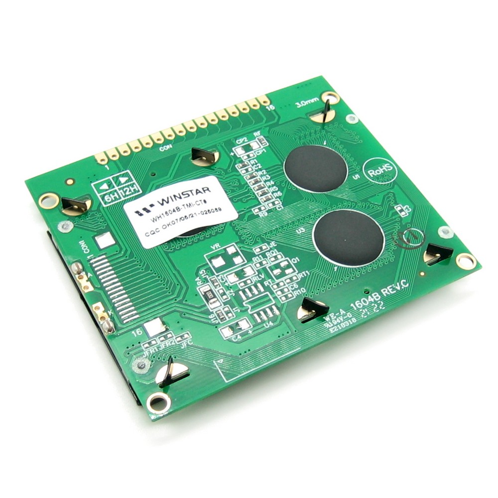 Фото может отличаться от реального вида предмета, но это не влияет на основные характеристики изделия | Жидко-кристаллическая матрица WH1604B-TMI-CT символьный - 16 символов x 4 строк. размеры модуля, мм: 70.6 x 60.0. размер видимой области, мм: 60.0 x 32.6. Размер символа: 2,95х4,75 мм, English/Cyrillic Font