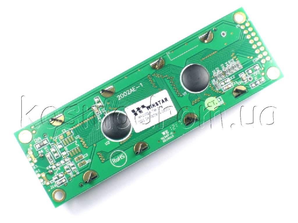 Фото может отличаться от реального вида предмета, но это не влияет на основные характеристики изделия | Жидко-кристаллическая матрица WH2002A-TMI-CT символьный - 20 символов x 2 строк. размеры модуля, мм: 116.0 x 37.0. размер видимой области, мм: 85.0 x 18.6, диагональ: 3.4 (8.7 см). Размер символа: 3,2х5,55 мм, English/Cyrillic Font