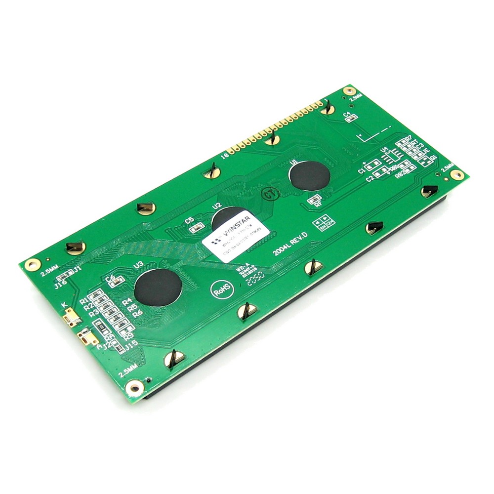 Фото может отличаться от реального вида предмета, но это не влияет на основные характеристики изделия | Жидко-кристаллическая матрица WH2004L-YYH-CT Символьный ЖК-дисплей 20х4: размер 146х62.5 мм: видимая область 123.5х43 мм:контроллер ST7066: STN позитивный желто-зеленый: подсветка LED трансфлективный: угол обзора 6:00: English/Cyrillic Font