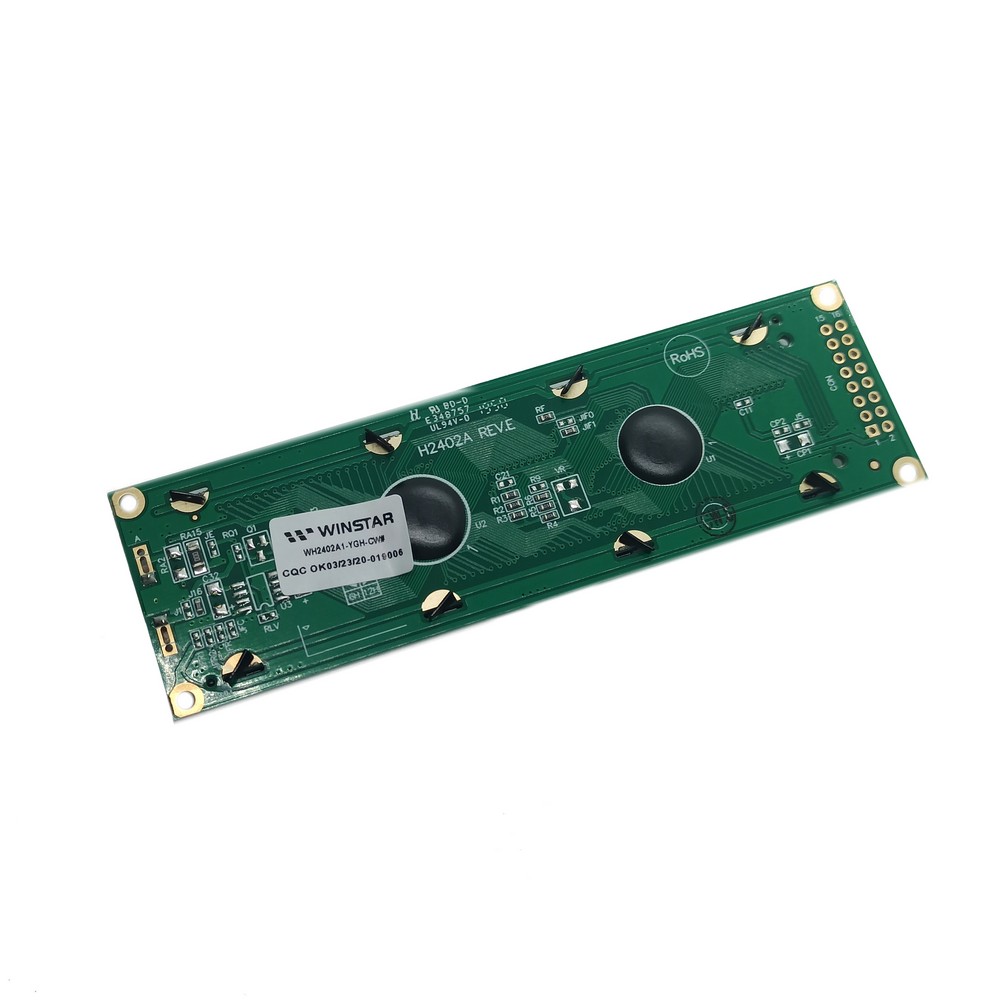 Фото может отличаться от реального вида предмета, но это не влияет на основные характеристики изделия | Жидко-кристаллическая матрица WH2402A1-YGH-CW-SPI символьный - 24x2, размеры, мм: 118.0 x 36.0, Размер символа: 3,2х5,55 мм, Интерфейс SPI, English/Cyrillic Font