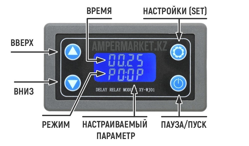 Модуль позволяет устанавливать время от 0,01 секунды до 9999 минут. Таким